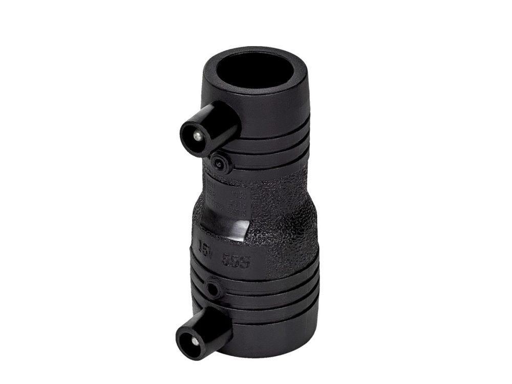 Электросварной редукционный переход GASfuse имеет размерное соотношение SDR 11, закрытую спираль для защиты от повреждений и контакты 4.7мм. Применяется для соединения труб разных диаметров.